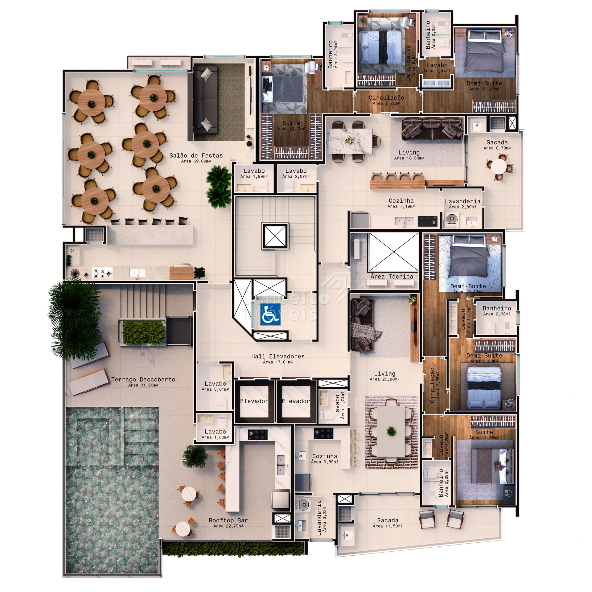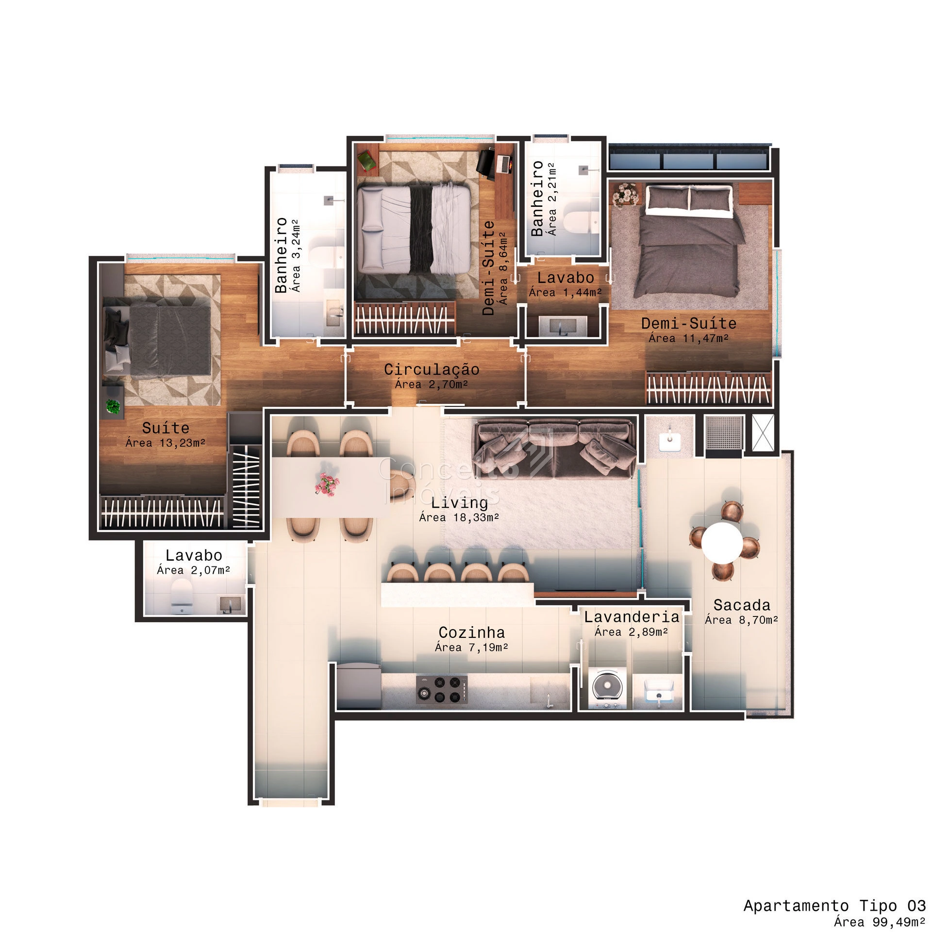 🛋️ Detalhes Internos dos Apartamentos