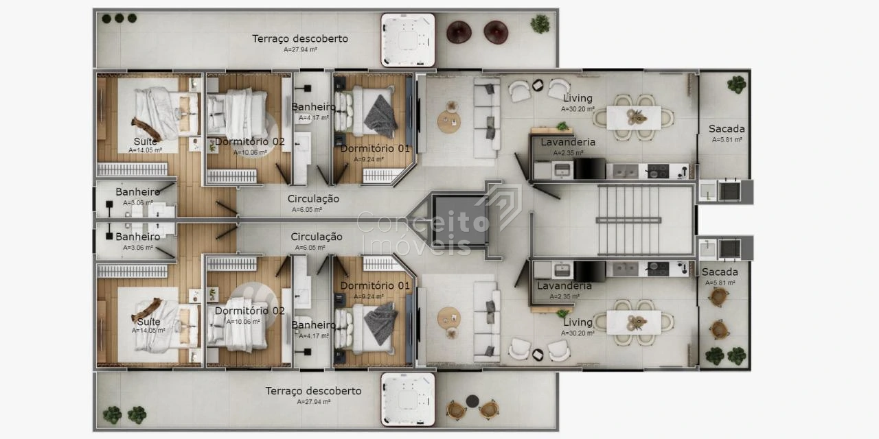Pisos premium de porcelanato e madeira nobre, oferecendo conforto e estética impecável.