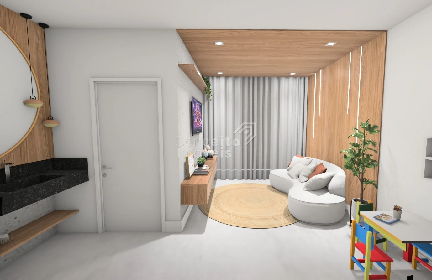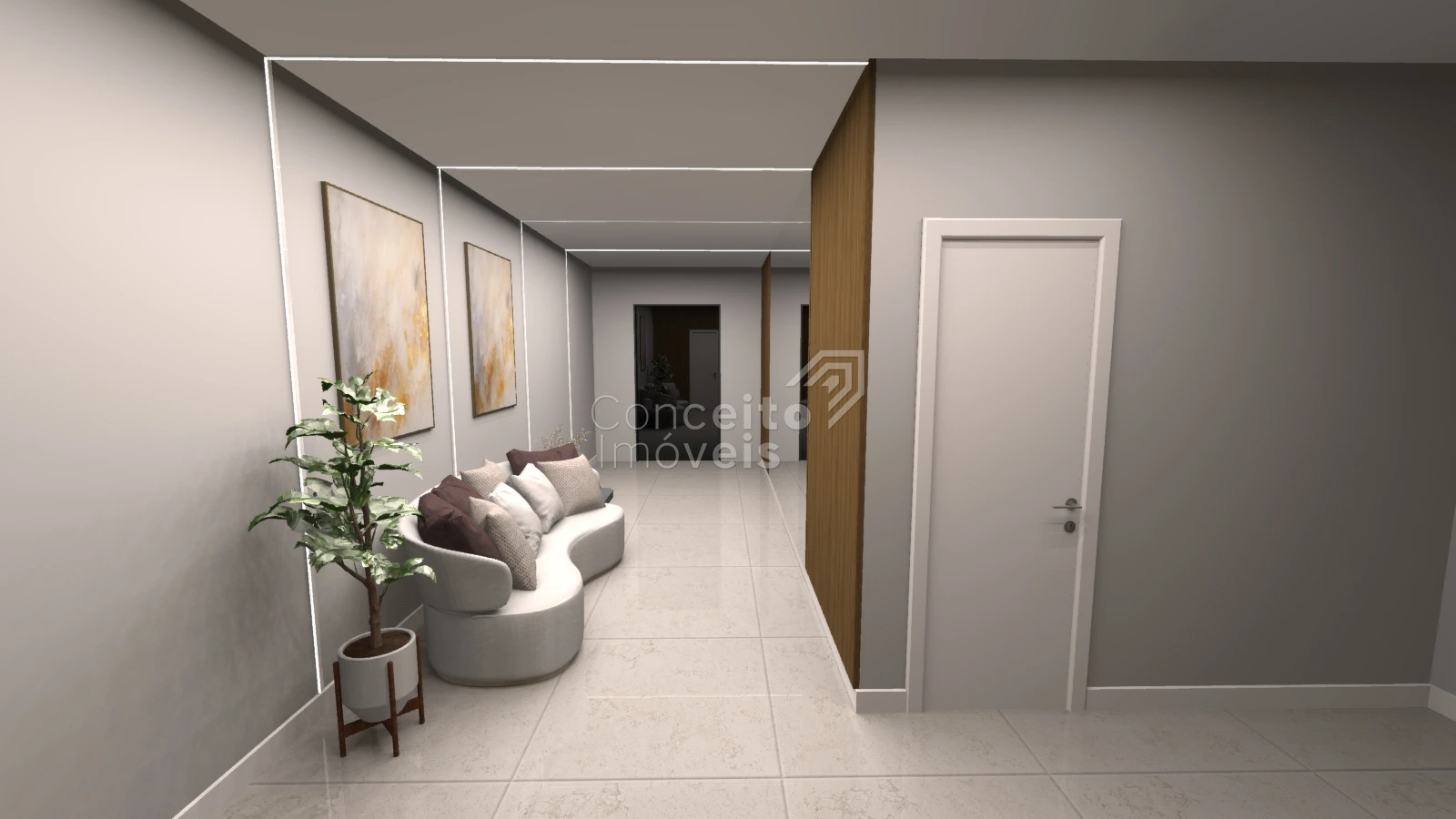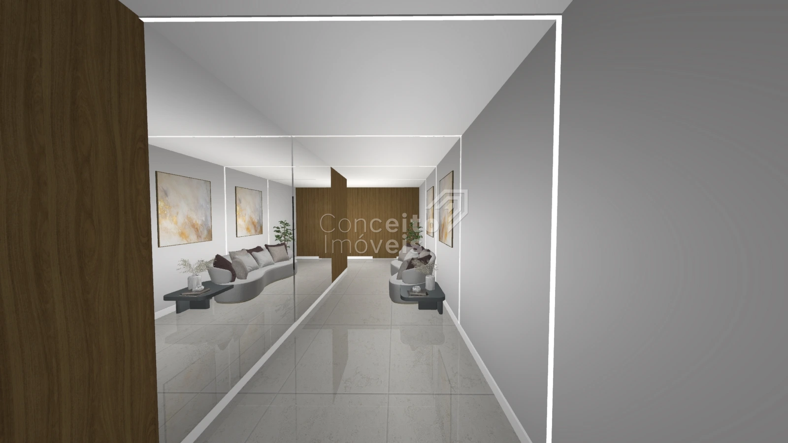 Iluminação planejada e pontos estratégicos para decoração, quadros ou plantas de designer.
