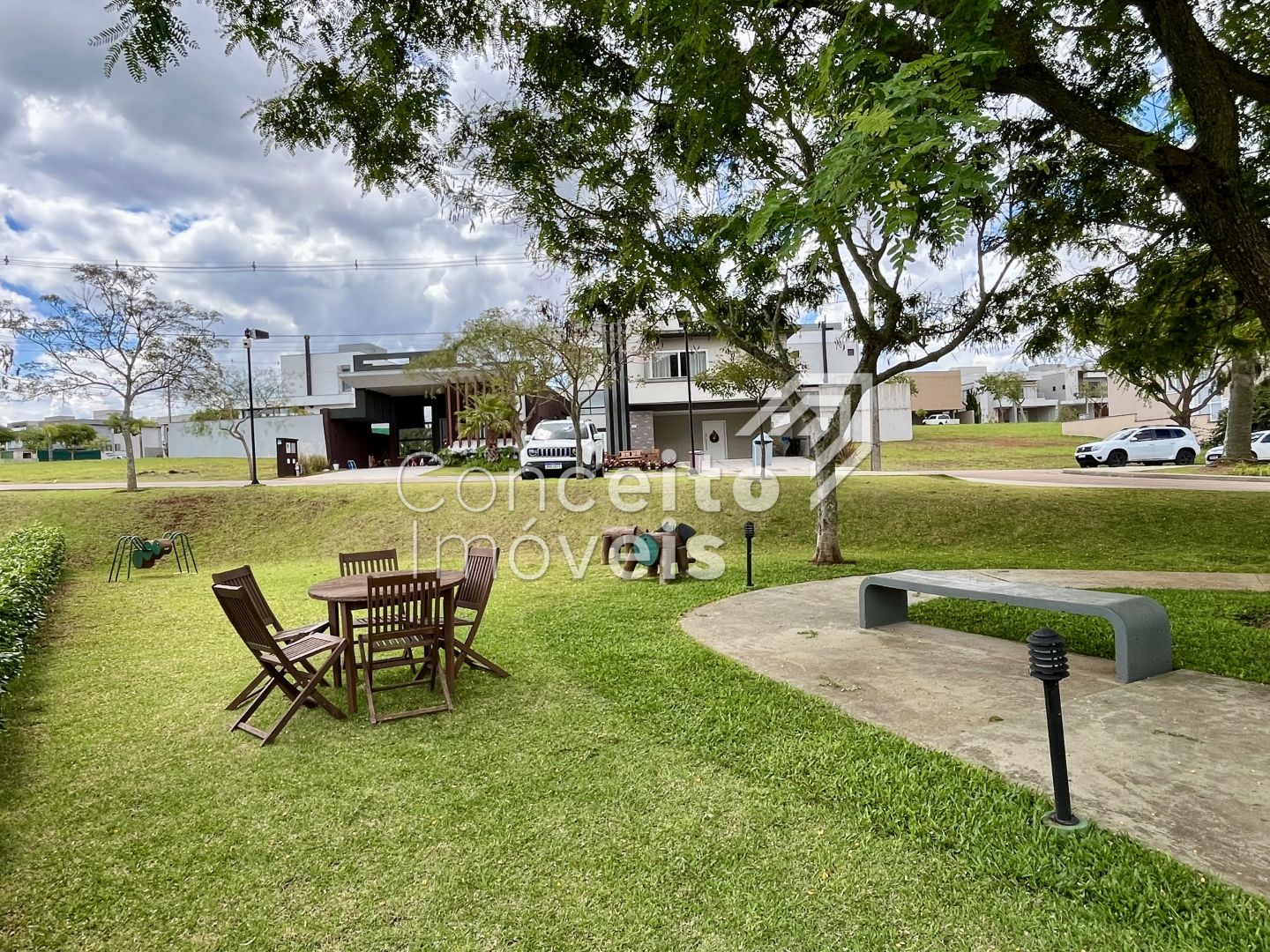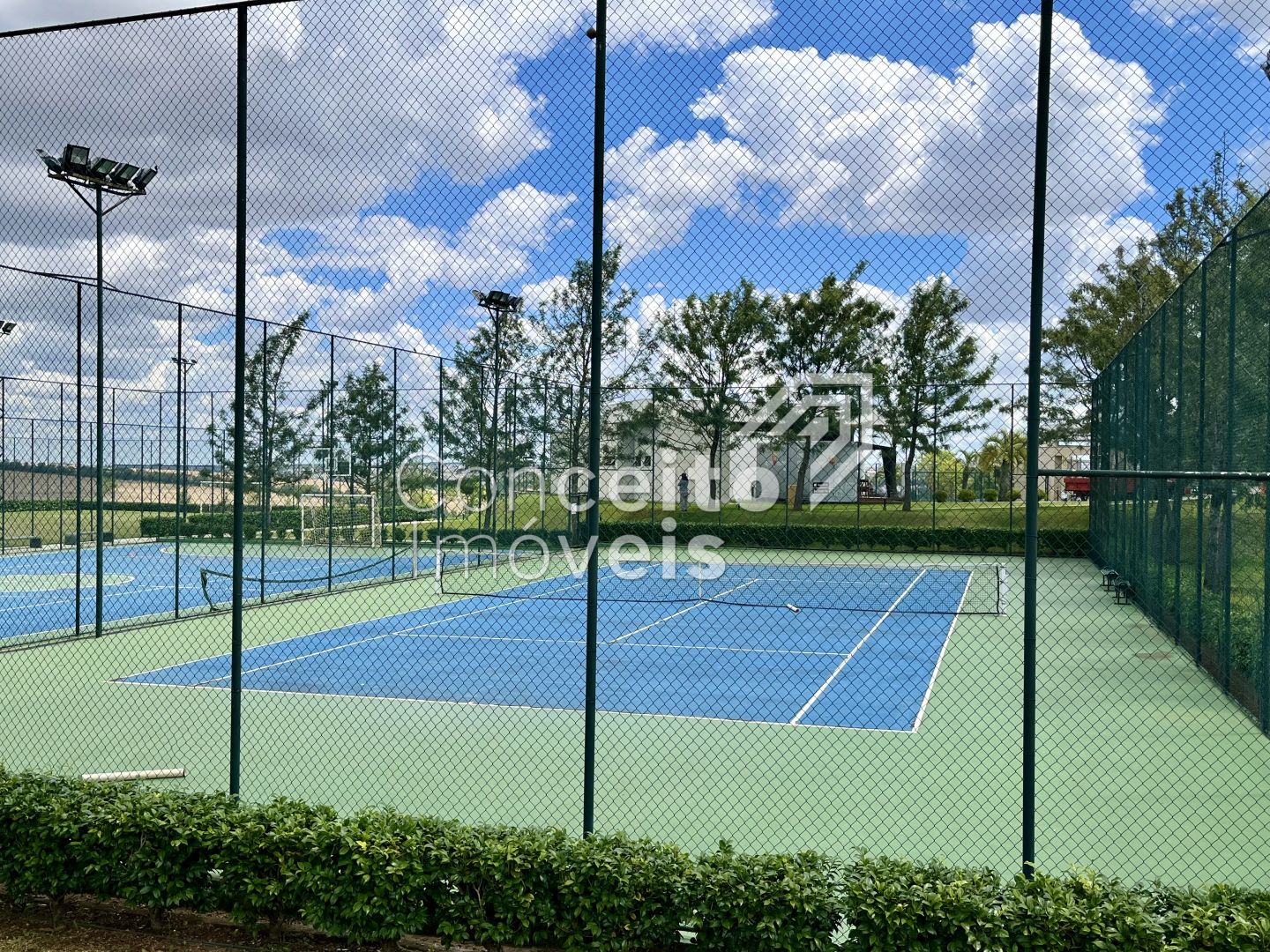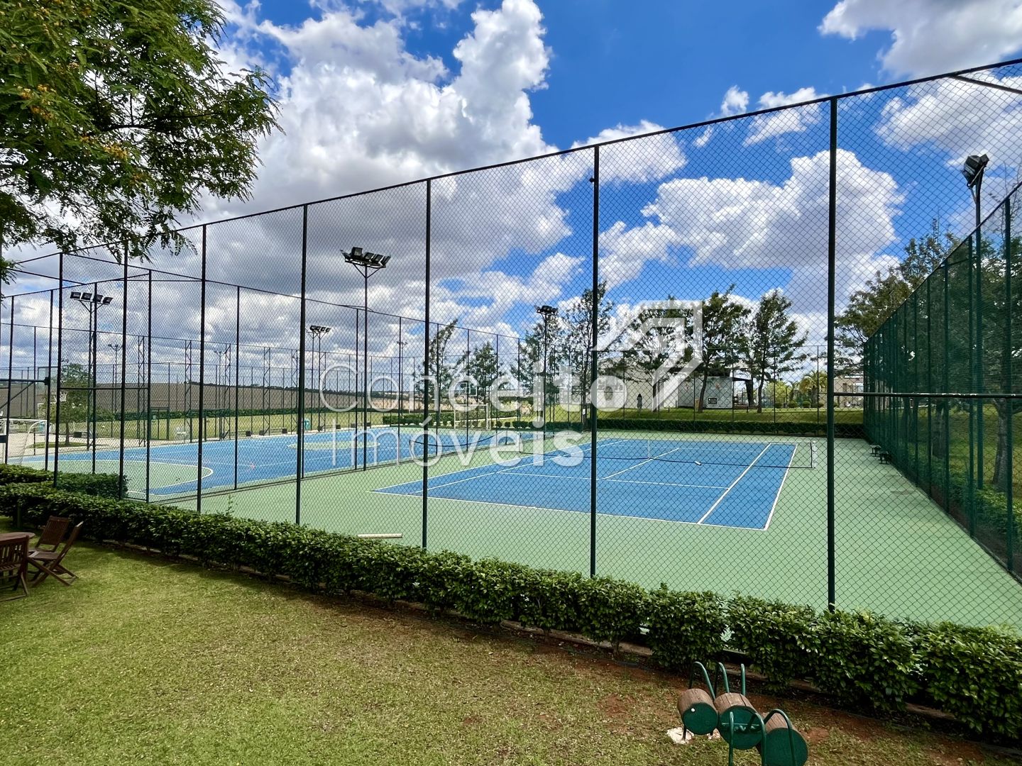Sendo que o Condomínio também oferece estrutura completa de: Portaria 24 horas, paisagismo com mais de 75 mil m2 de áreas verdes, mais de 40 espécies diferentes de plantas e diversos espaços de convivência com a natureza, churrasqueira piscinas adulto e infantil, playground, pista de bicicross, quadra poliesportiva, quadra de tênis, campo de futebol society, salão de festas com espaço gourmet, churrasqueira com Forno de Pizza, salão de jogos e academia;