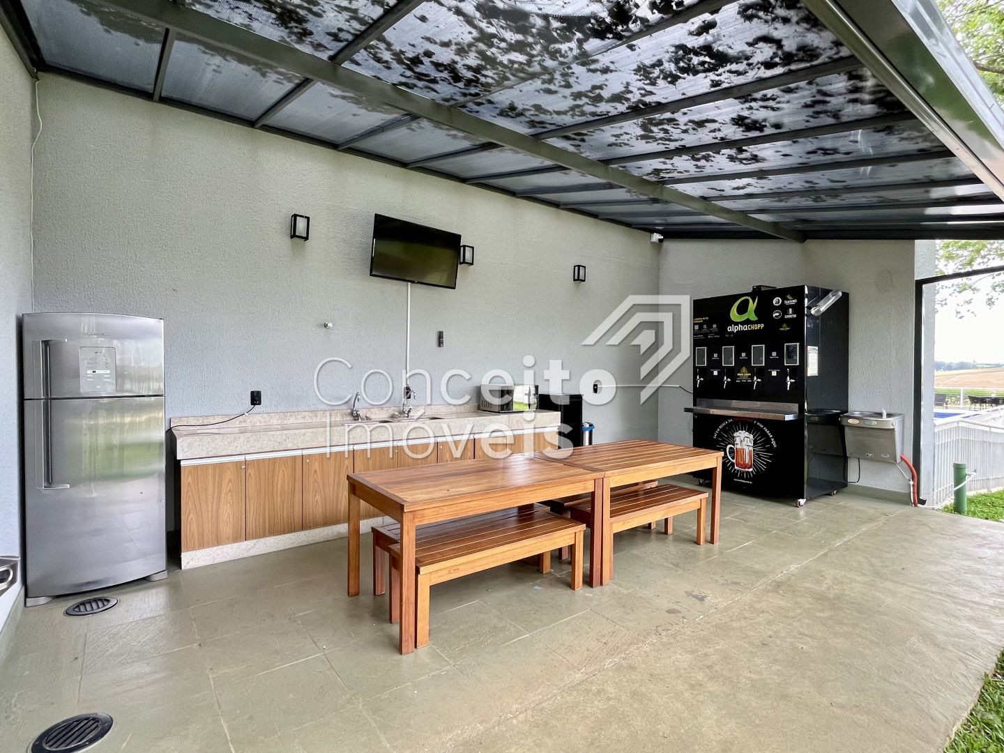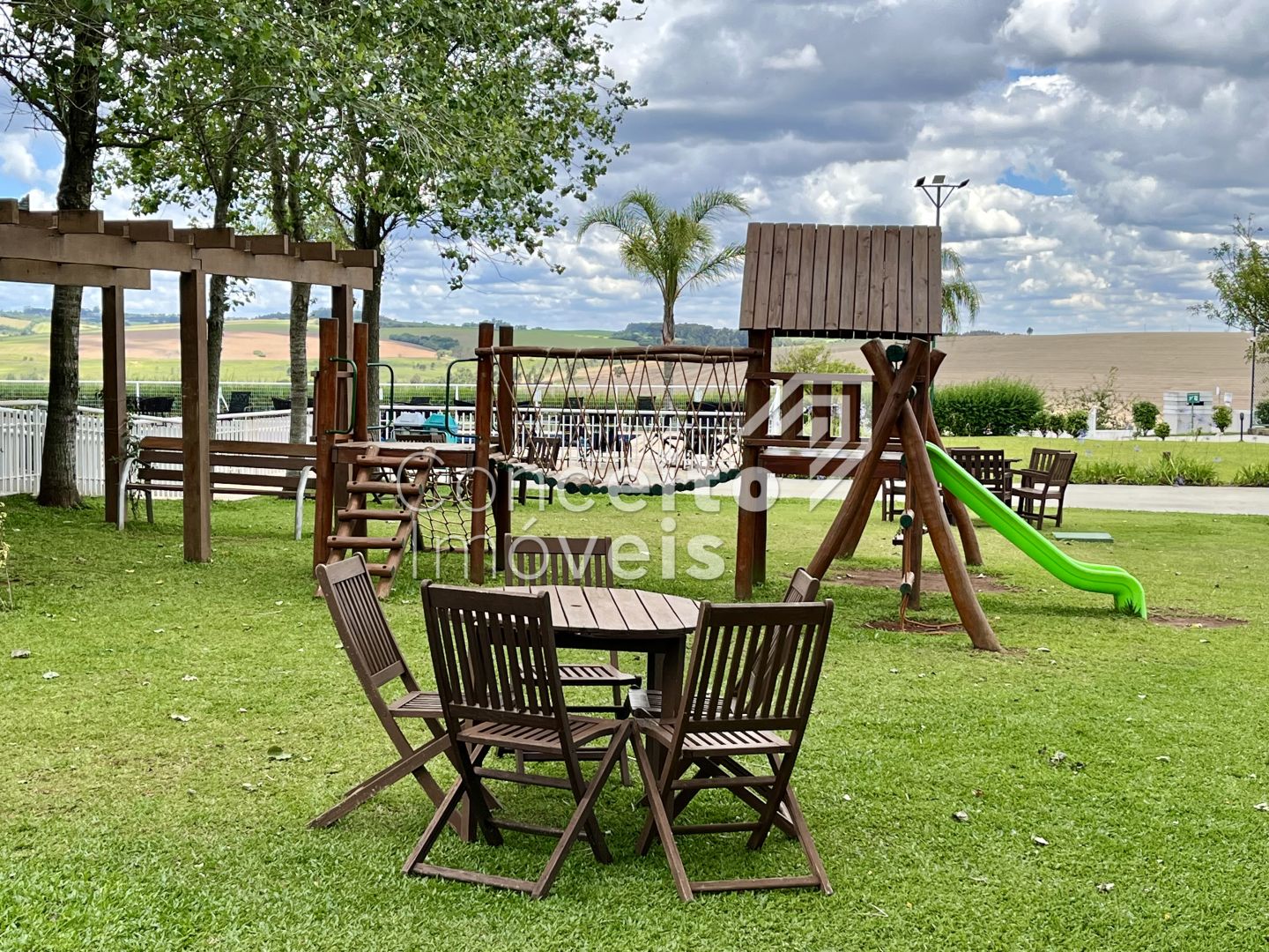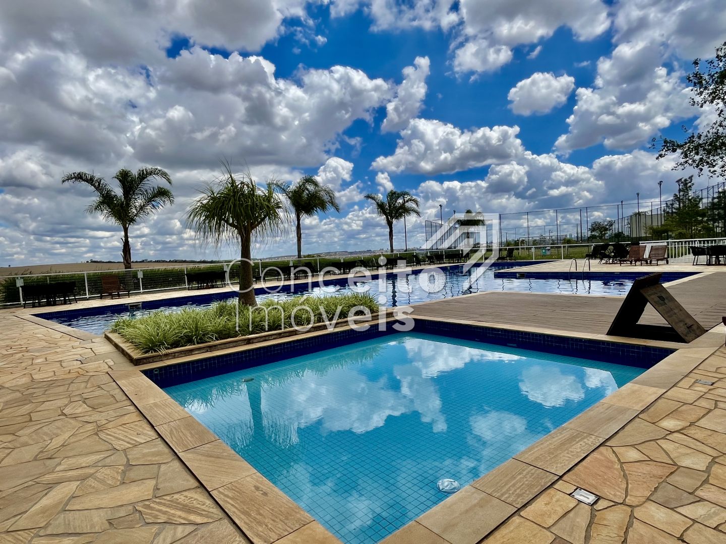 Sendo que o Condomínio também oferece estrutura completa de: Portaria 24 horas, paisagismo com mais de 75 mil m2 de áreas verdes, mais de 40 espécies diferentes de plantas e diversos espaços de convivência com a natureza, churrasqueira piscinas adulto e infantil, playground, pista de bicicross, quadra poliesportiva, quadra de tênis, campo de futebol society, salão de festas com espaço gourmet, churrasqueira com Forno de Pizza, salão de jogos e academia;