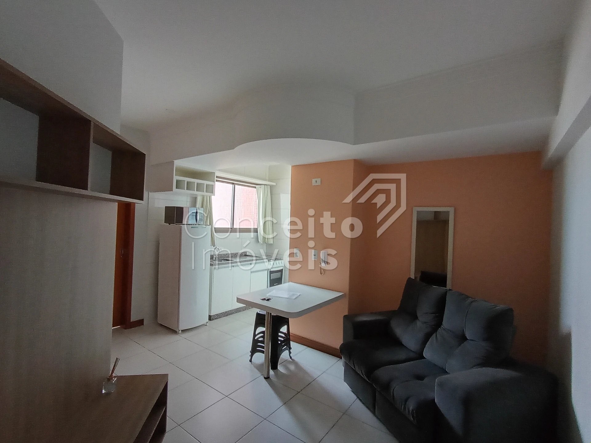 Excelente Apartamento, semi mobiliado, com localização central e privilegiada, situado no Edifício Aspen Ville, o apartamento fica no 9º andar ou 10º pavimento, medindo 39,82 m² de área privativa, contendo: Cozinha mobiliada com armários, pia, fogão à gás, geladeira e bancada para refeição, lavanderia com armário, sala integrada à cozinha, contendo painel de tv e armário planejado, banheiro com armário, espelho, box e chuveiro elétrico, 01 quarto com móveis planejados e cama box de casal, 01 vaga de garagem (Vaga 11);