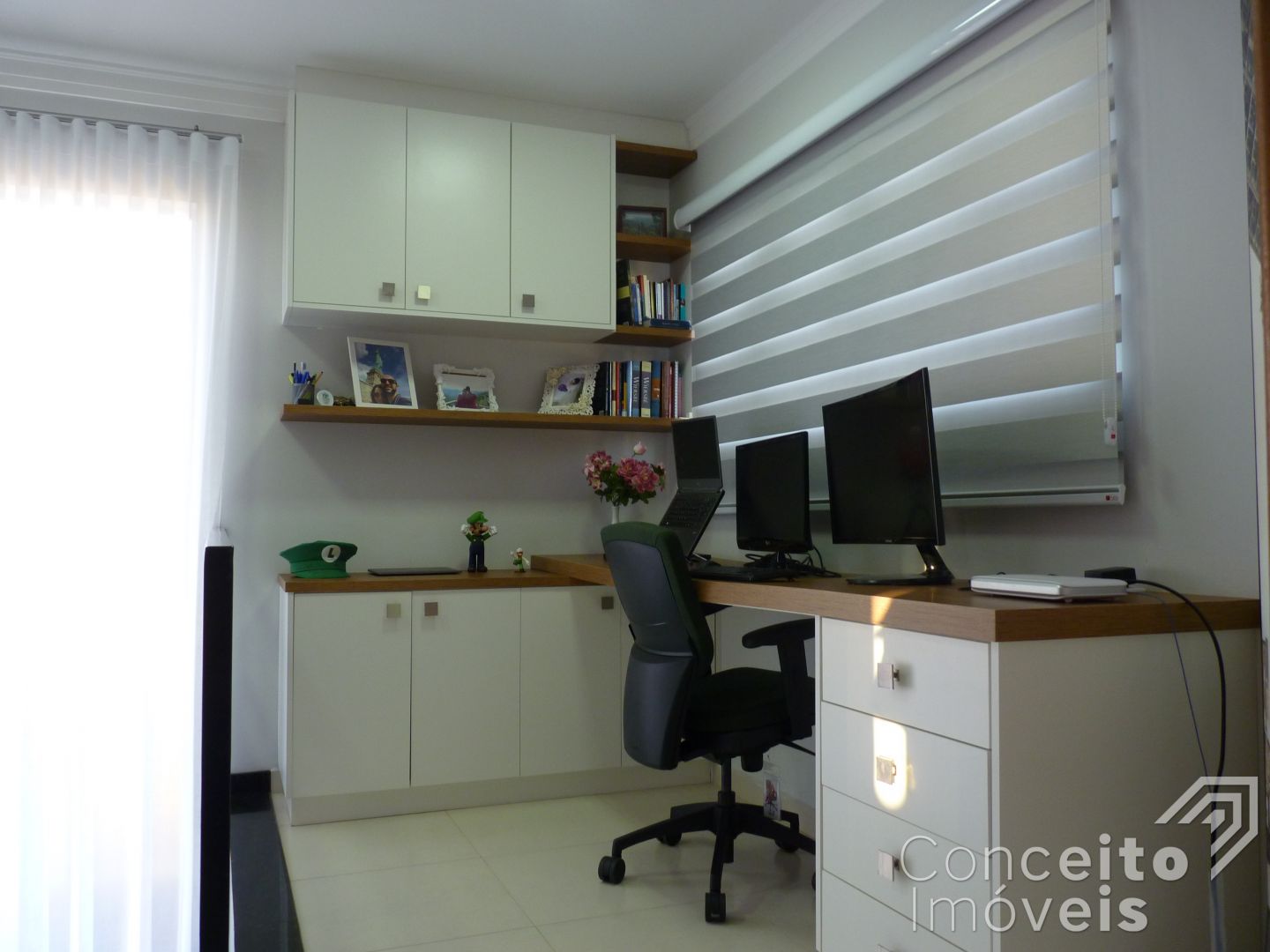Além da localização tranquila e bastante segura, este imóvel também se destaca por possuir móveis planejados, cortinas em todos os ambientes, piso em porcelanato, sistema de iluminação inteligente na sala de tv, jantar e cozinha, iluminação personalizada em led, aquecimento à luz solar com central interna, porém há preparo para aquecimento à gás, rebaixo em gesso, cerca elétrica, portão eletrônico e um pequeno jardim;