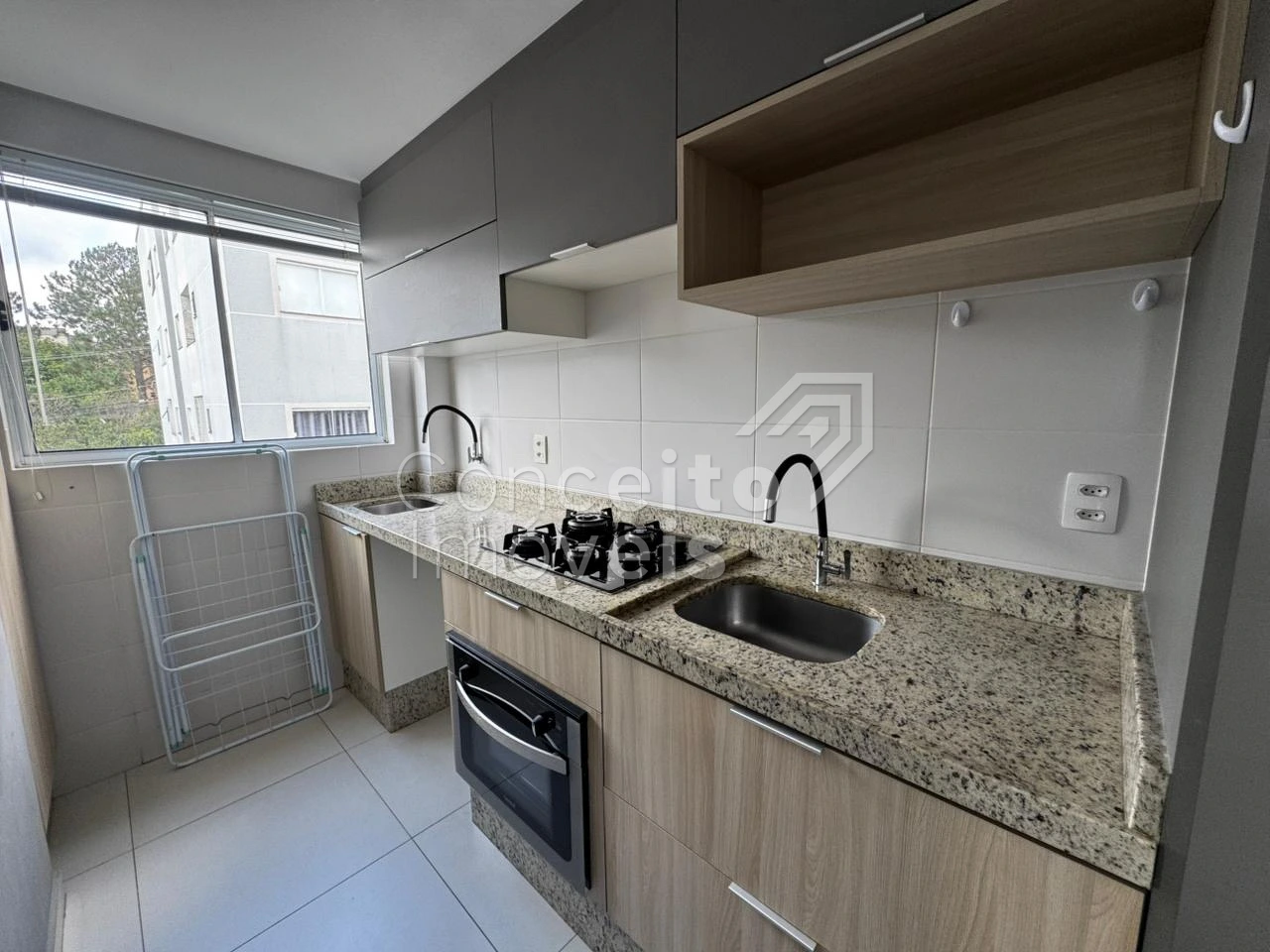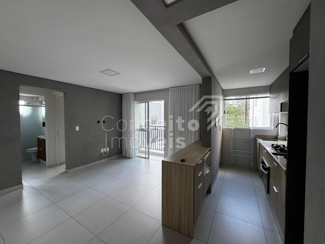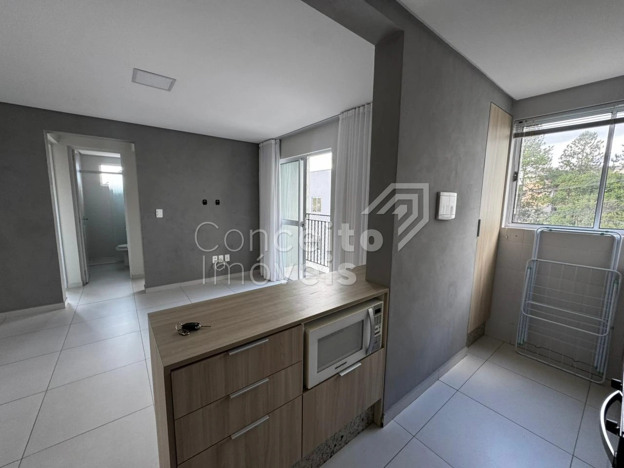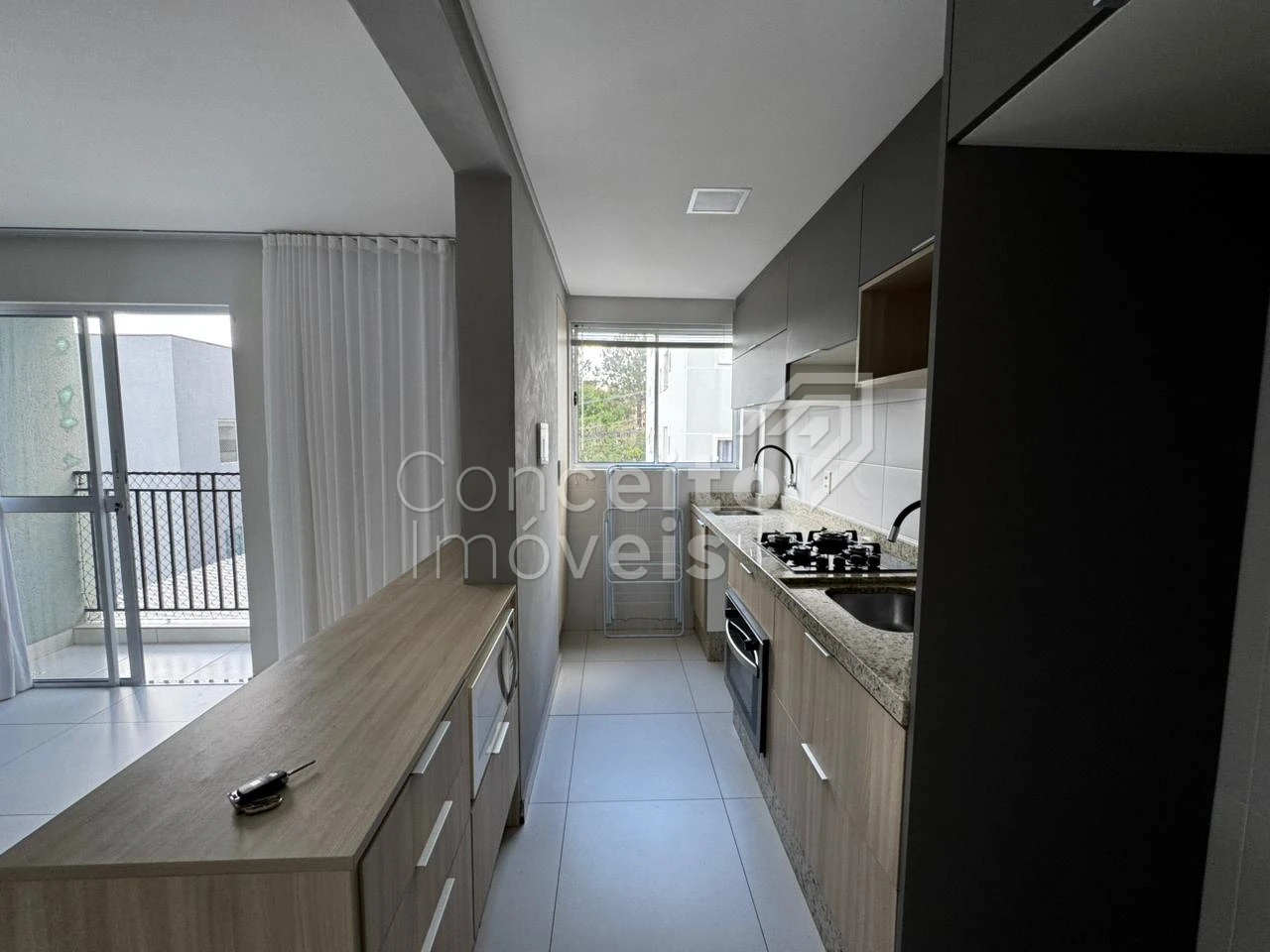 Apartamento semi mobiliado, situado no bairro Jardim Carvalho, contendo: 02 quartos, banheiro social com box e chuveiro, copa e sala integradas, cozinha com planejados, fogão e bancada para refeições, sacada com churrasqueira e 01 vaga de garagem. Todos os ambientes possuem cortinas.