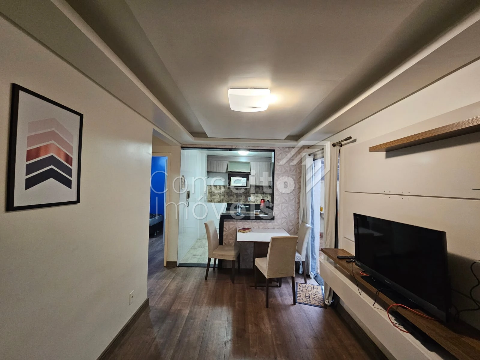 O apartamento contém 02 quartos, sala de estar e jantar no mesmo ambiente, uma bela cozinha com móveis planejados, 01 banheiro e uma área de serviço externa que pode ser usada como lavanderia também.