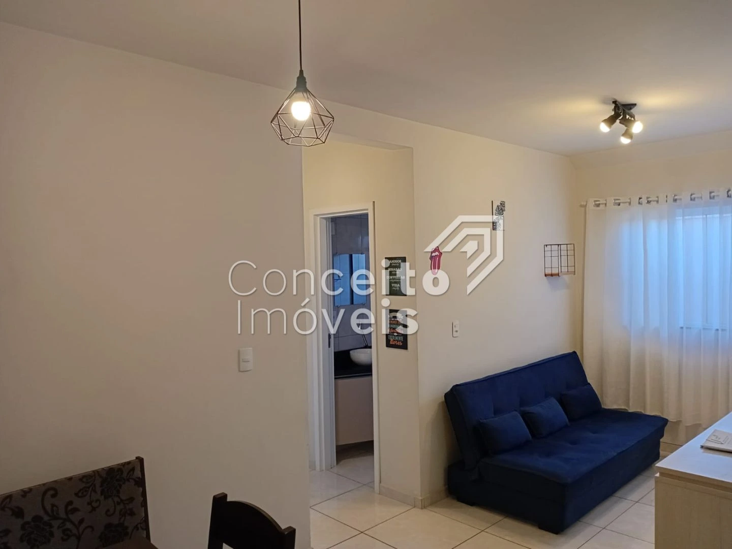 ✅ Sala de jantar + com sofá, mesa e lustres