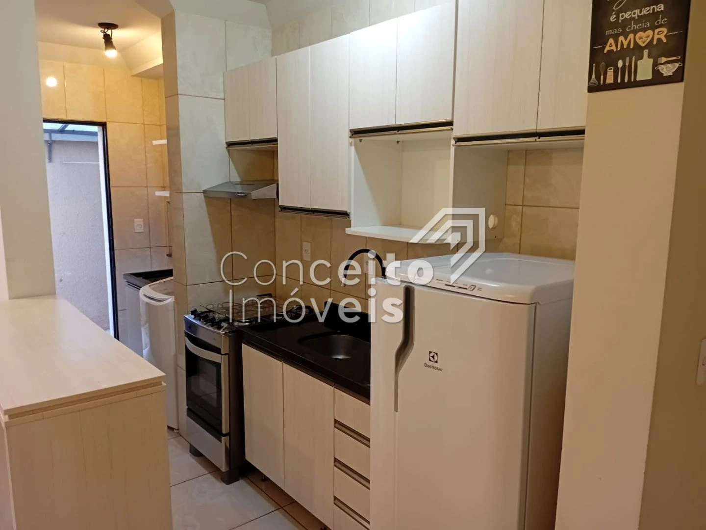 ✅ Cozinha com armários planejados, geladeira, fogão