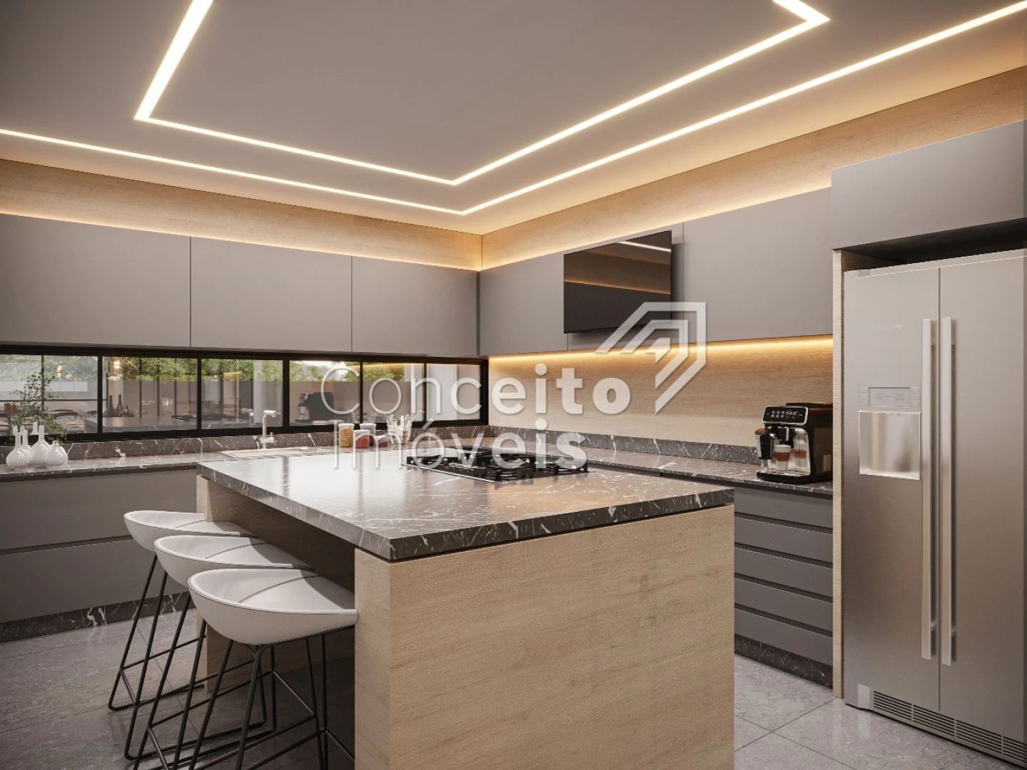 ✅ Cozinha, copa e churrasqueira em conceito aberto