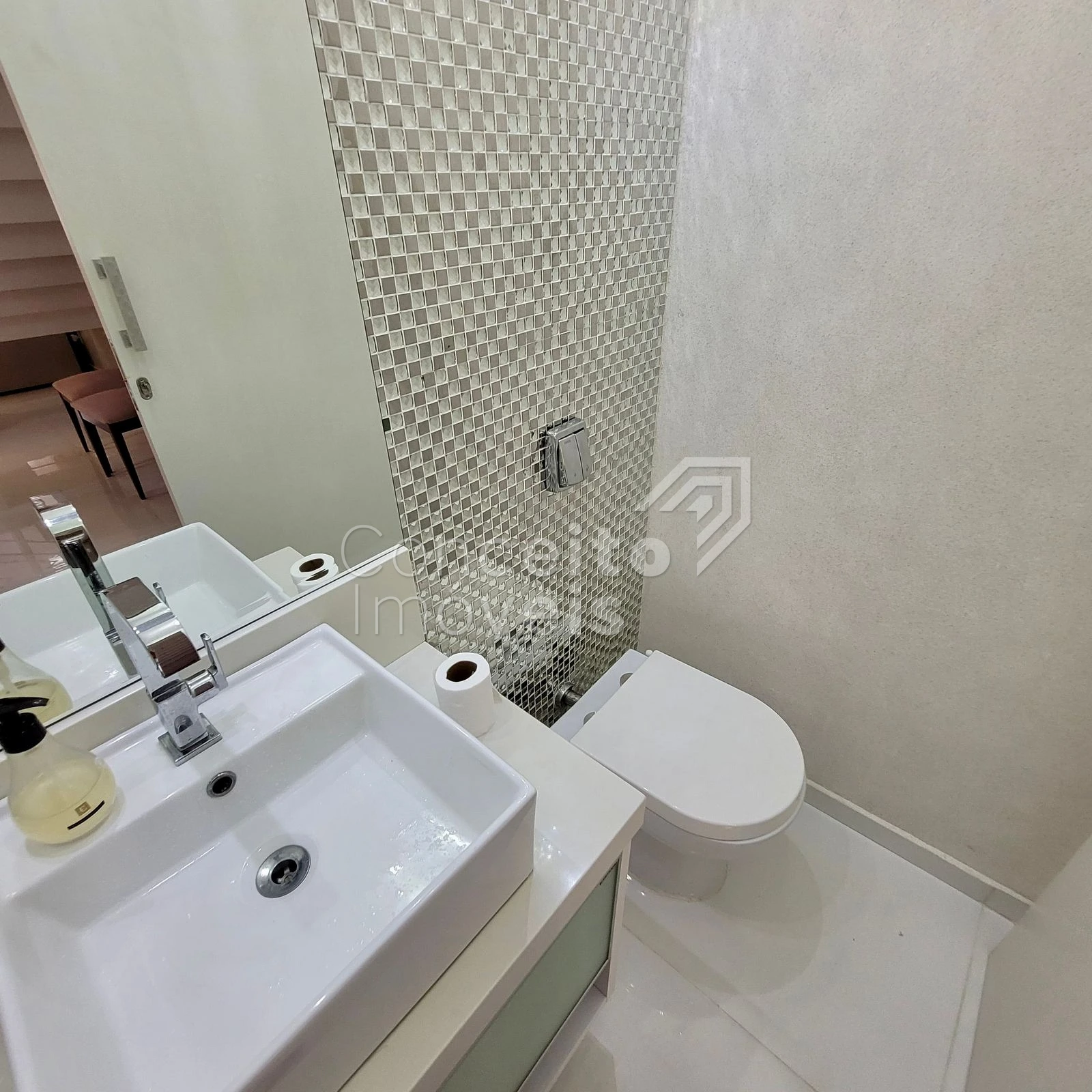 ✅Banheiro social com armário, espelho, box e chuveiro