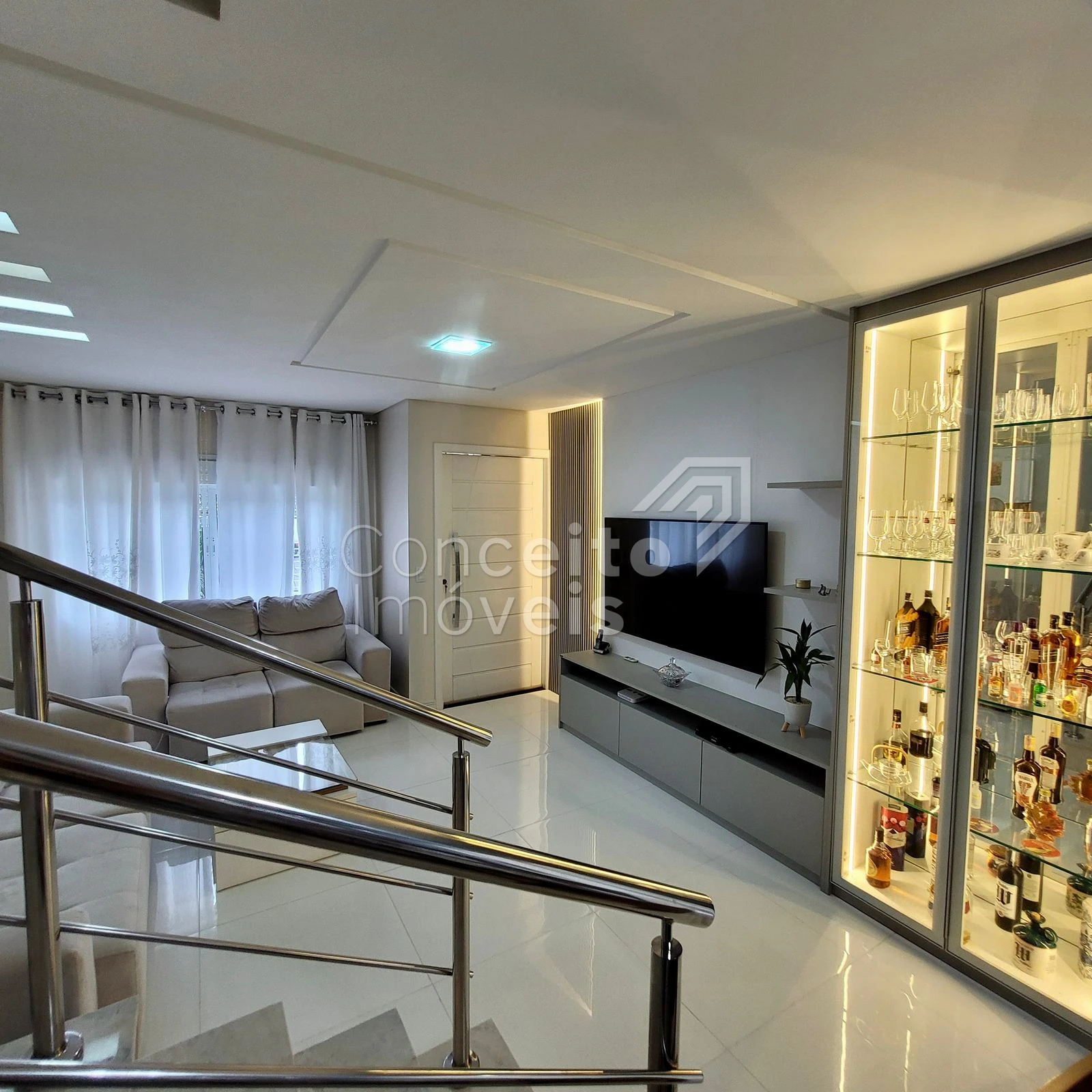 ✅Sala ampla para 2 ambientes, com teto rebaixado em gesso e iluminação personalizada