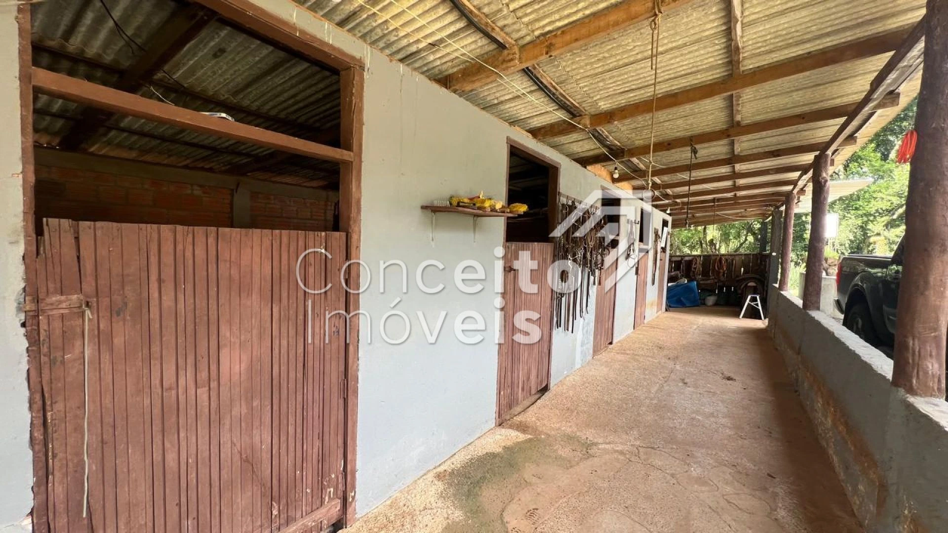 ✅Galpão com 15 cocheiras, perfeito para criação de cavalos ou outros animais;