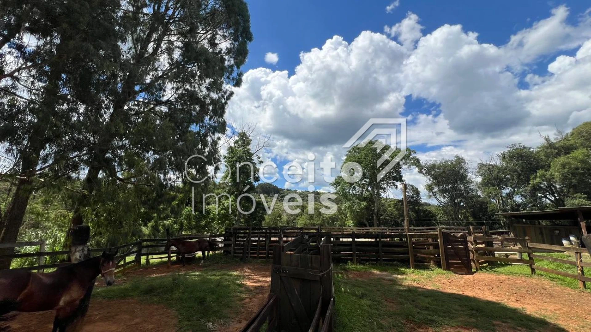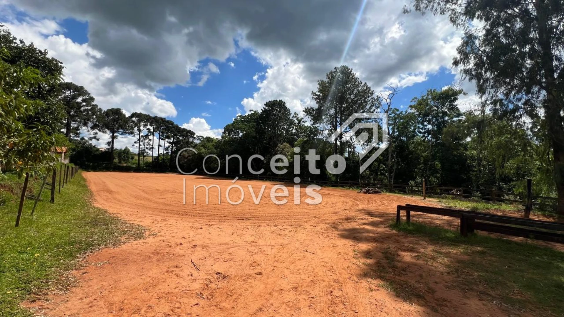 ✅ Pista de areia cercada (120 x 30 m), ideal para treinos de laço, doma ou competições;