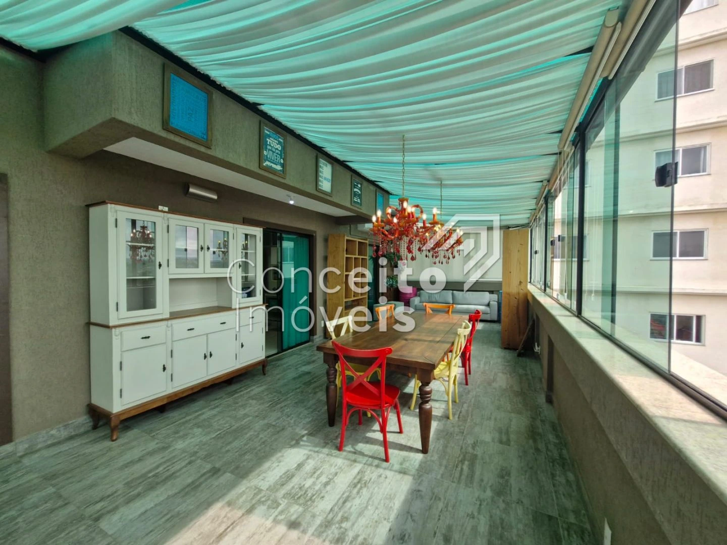 ✅ Sala de visitas / TV com sacada fechada em vidro