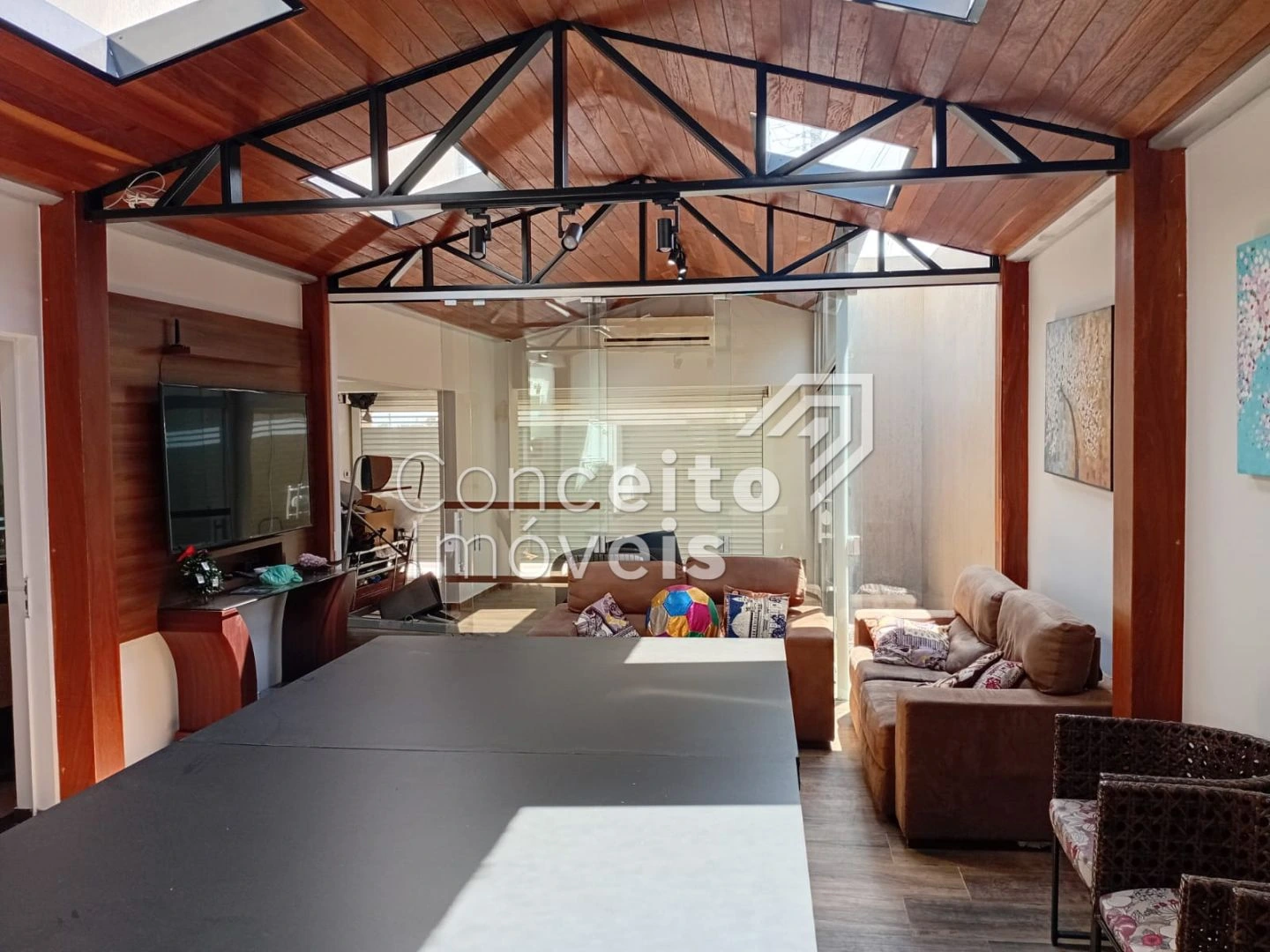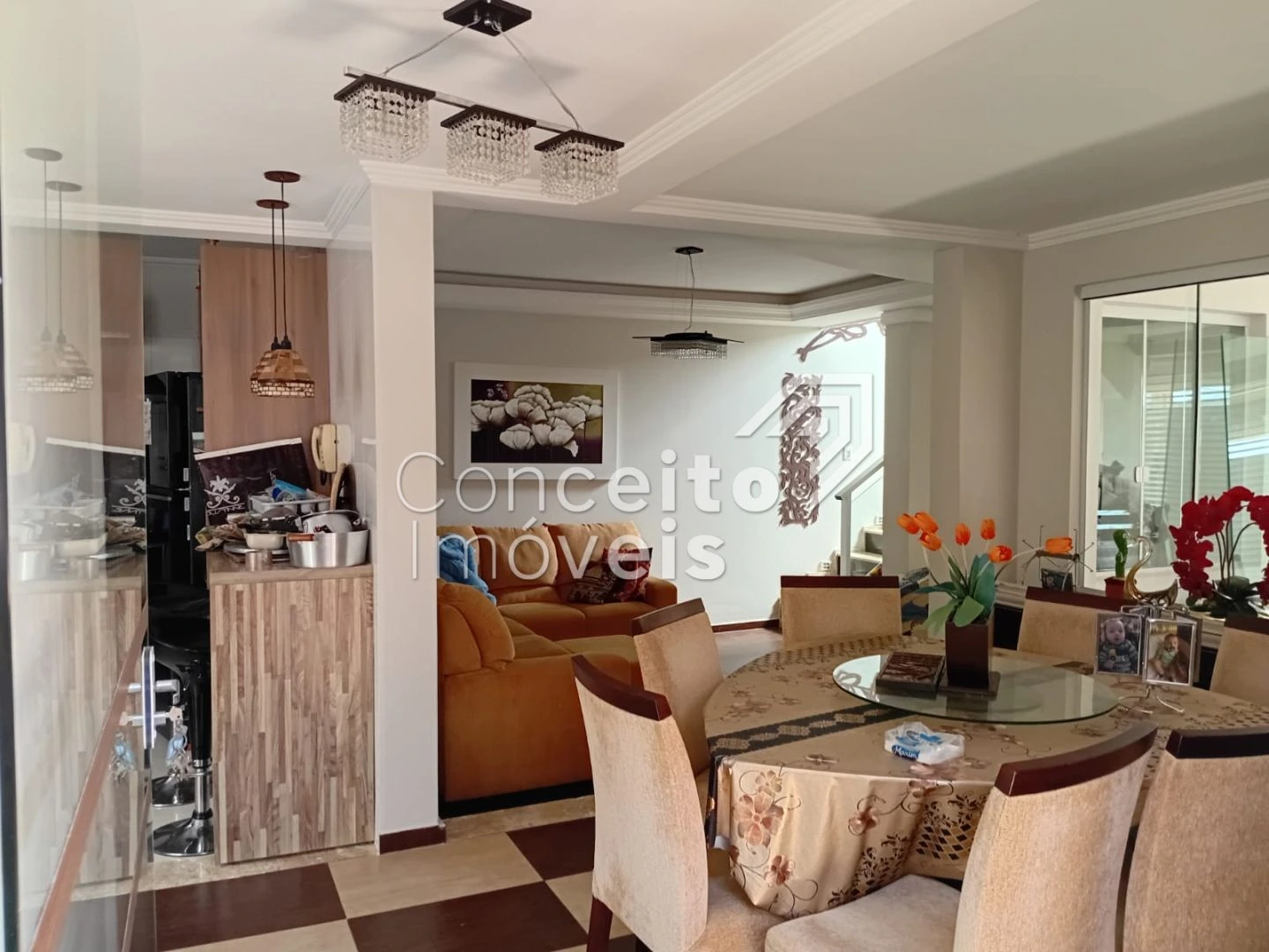 ✅ sala de estar + sala de jantar com sofá e mesa
