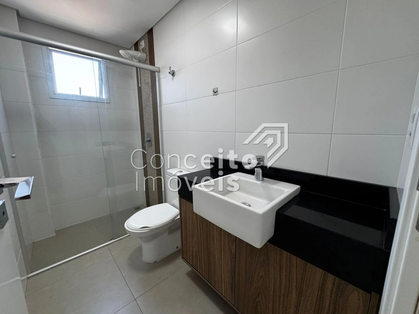 ✅ Banheiro social com box e chuveiro e armário planejado