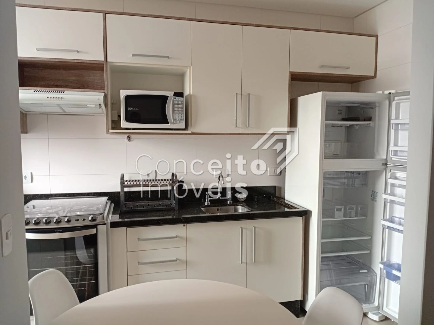 🍽️ Cozinha com armários planejados, geladeira, fogão, microondas