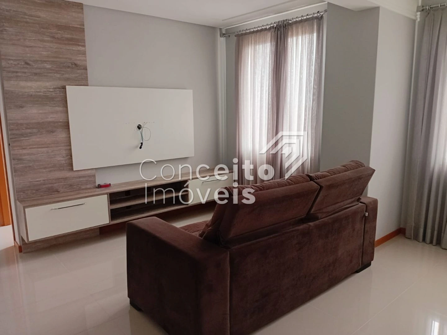 🛋️ Sala com sofá, painel de tv e mesa
