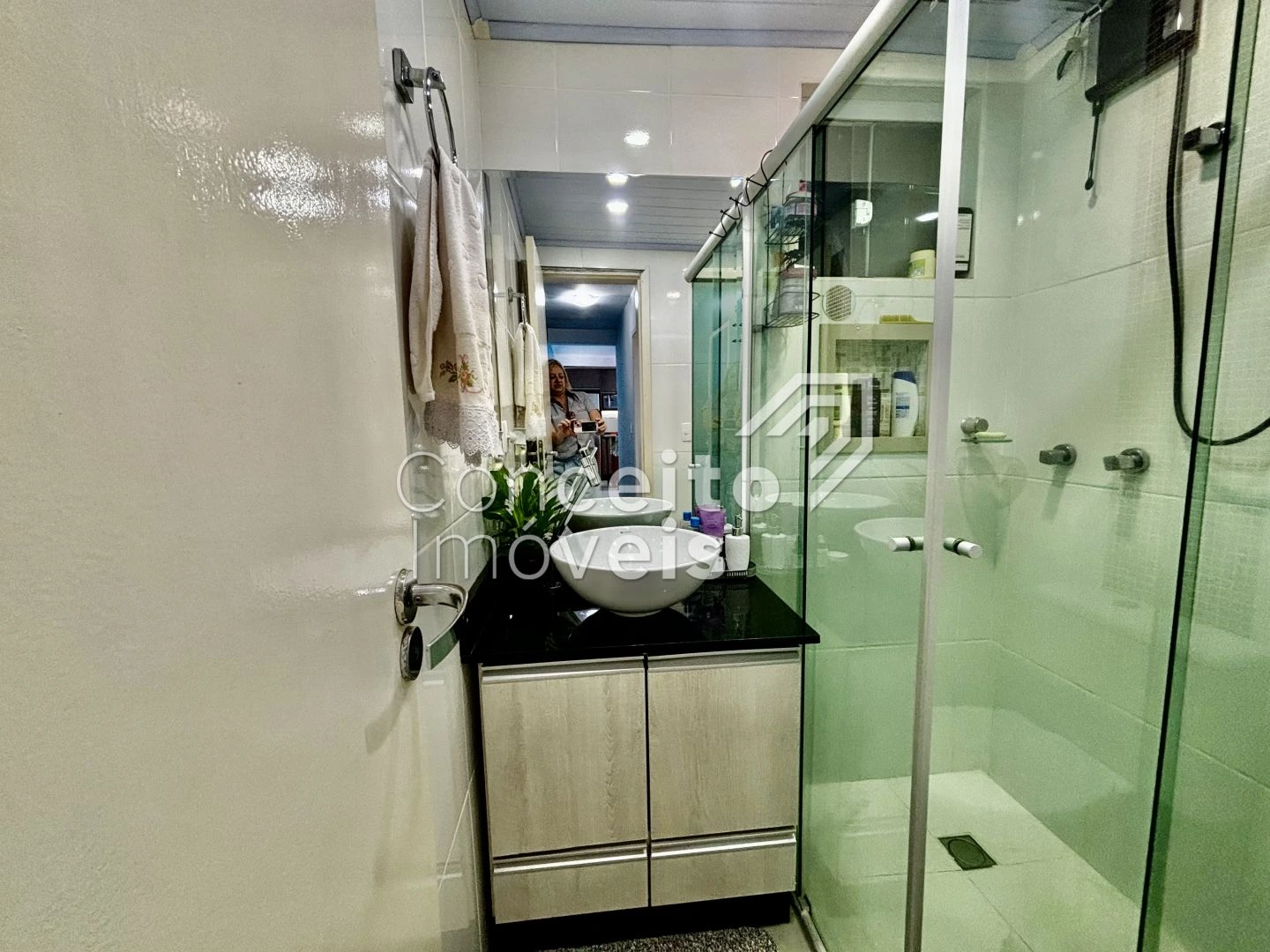✅ Banheiro social com armário, espelho e box