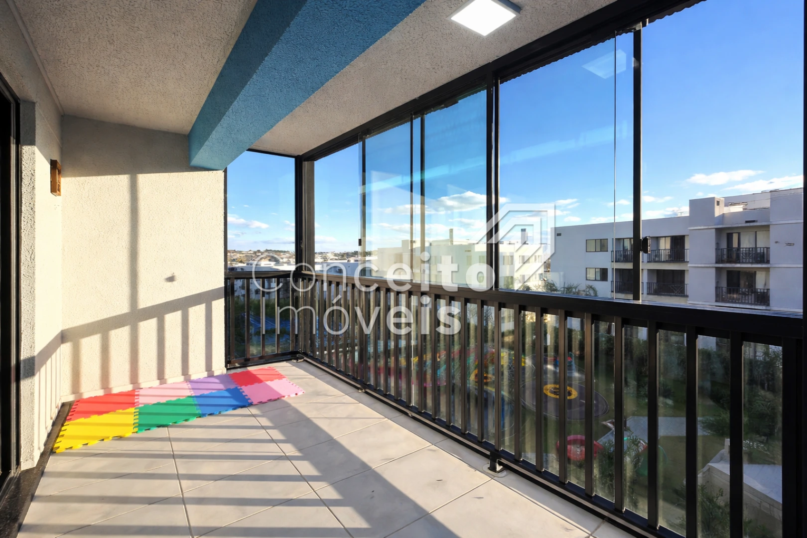 ✅ Sacada espaçosa com churrasqueira, toda fechada em vidro