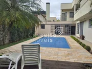 Sobre o imóvel: Ele é amplo e constituído por sala de estar com lareira, sala de jantar, sala de tv, são 4 quatros com suíte, na qual uma delas é a suíte master com banheira de hidromassagem e closet. Cozinha com móveis planejados e em perfeito estado, lavanderia e dependência para empregada, espaço gourmet com churrasqueira. Na parte exterior temo uma piscina com um amplo jardim. Quanto a vaga de garagem, o imóvel dispõe de 4 vagas cobertas de garagem.